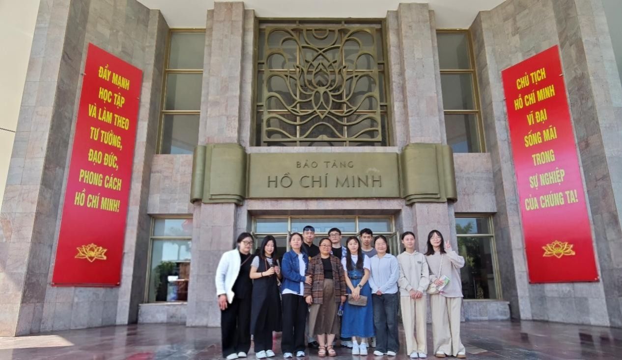 11月13日,啪啪网 赴越访学研修团在河内国家大学所属人文与社会科学大学陈幸源(cô nguyên)老师的带领下,以探究马克思列宁主义如何实现越南本土化为研究课题,前往胡志明博物馆开展社会实践活动。