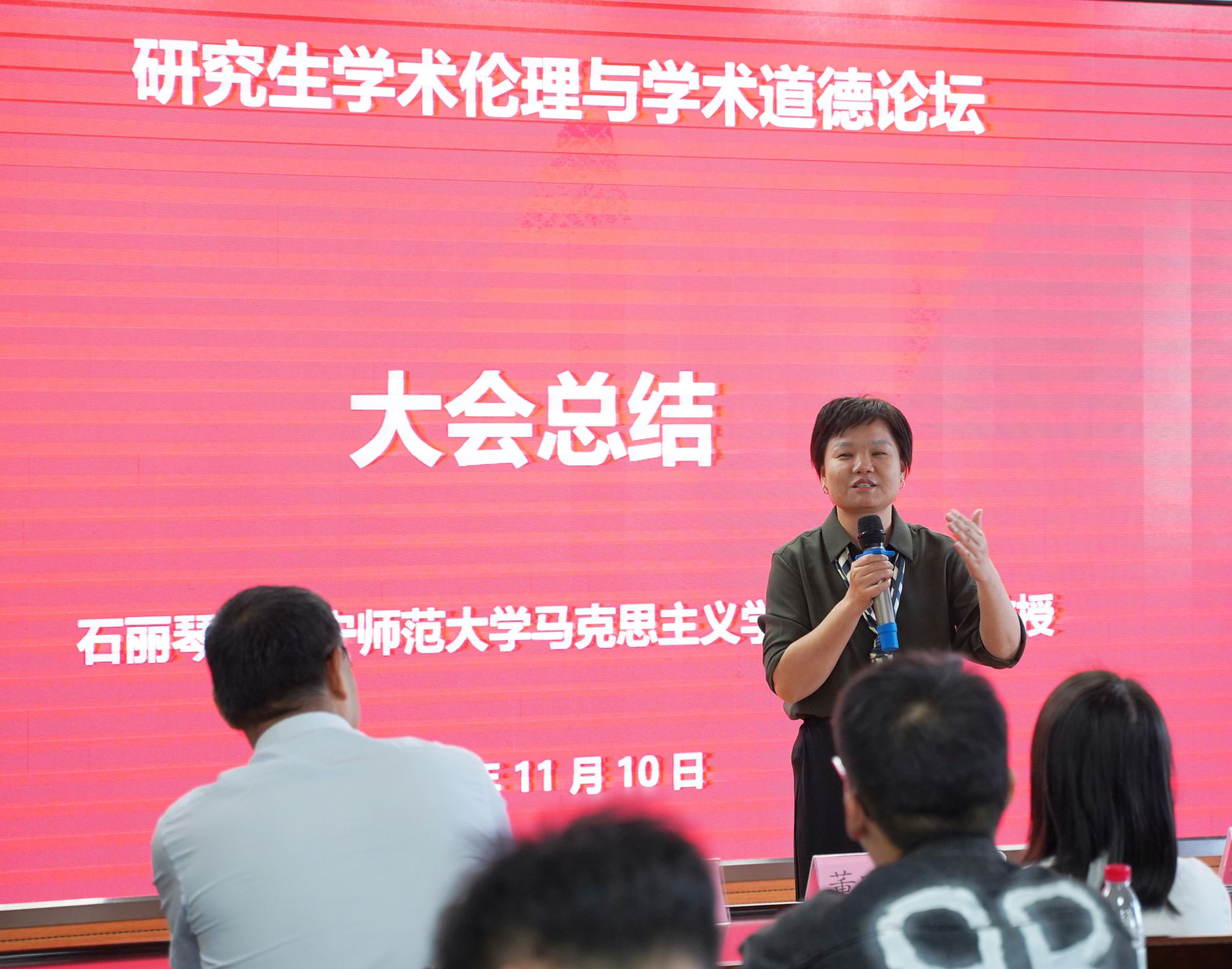 啪啪网 副院长石丽琴教授在总结时指出,本次论坛得到了区内外高校研究生的积极参与和支持,也得到曾建平教授及权麟春教授等专家学者的大力支持,确保了论坛的顺利举办。她进一步强调,唯有通过全体同仁的共同努力与紧密协作,切实遏制学术不端现象,有力维护学术研究的公信力和创新活力,才能共同营造一个更加和谐的学术环境,为学术创新与繁荣贡献力量。