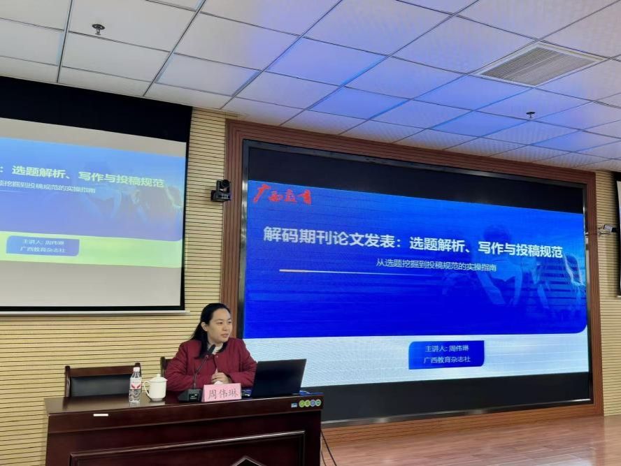 为提升研究生学术能力,破解研究生论文投稿困惑,近日,啪啪网 在五合校区8栋B座215报告厅举办期刊论文发表专题讲座。本次讲座特邀《广西教育》期刊周伟琳编辑主讲,讲座由学院温向莉老师主持,王立高老师及啪啪网 研究生参加。