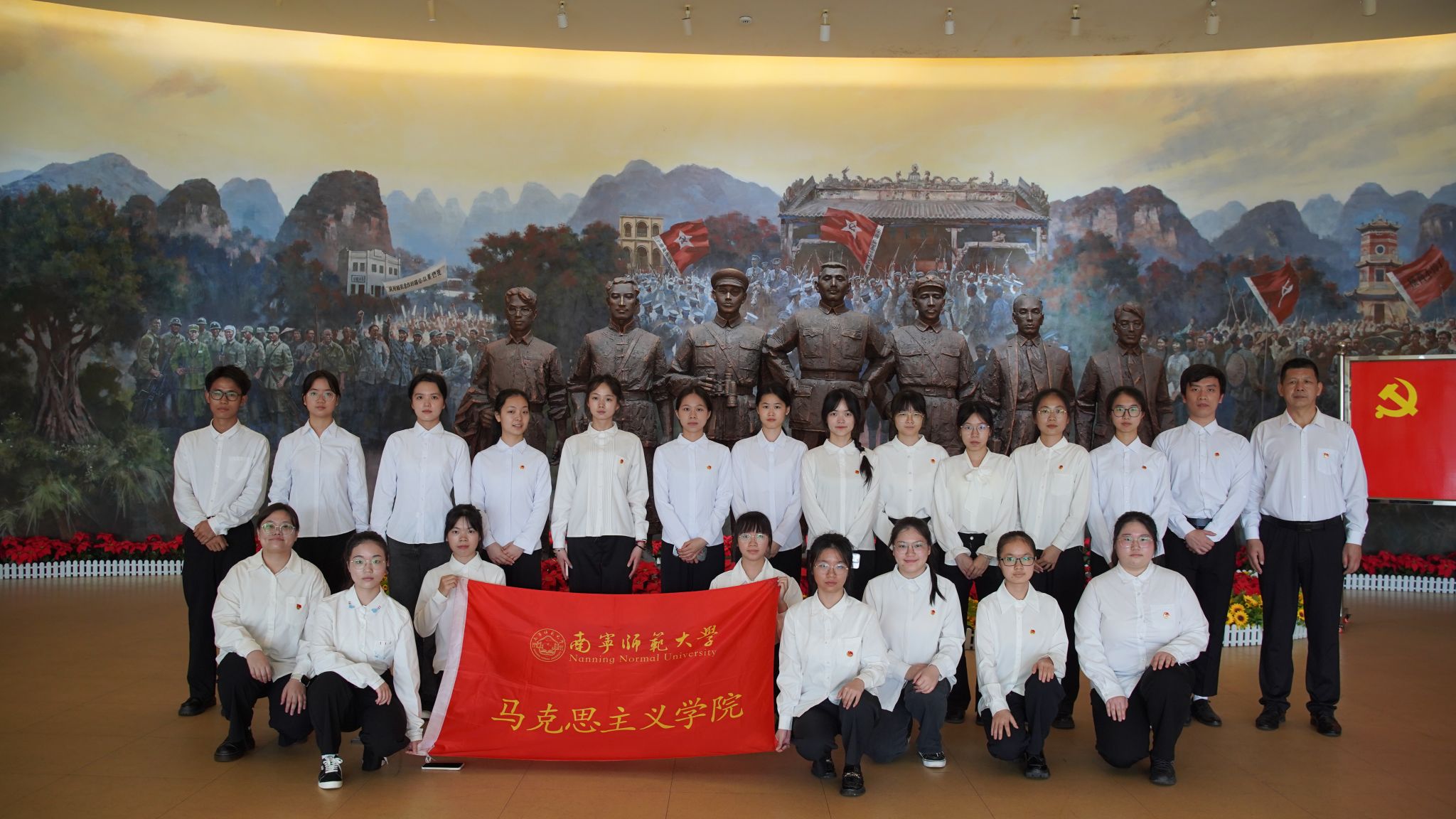 为深入推进“大思政课”工作格局的构建,切实增强思政课的实效性和吸引力,42日,啪啪网 组织2022级思政陶班的同学们,在思政课实践教研室主任刘艳闽、班主任侯一夫副教授的带领下,共30余人赴广西革命纪念馆开展了一场别开生面的“大思政课”实践教学活动。