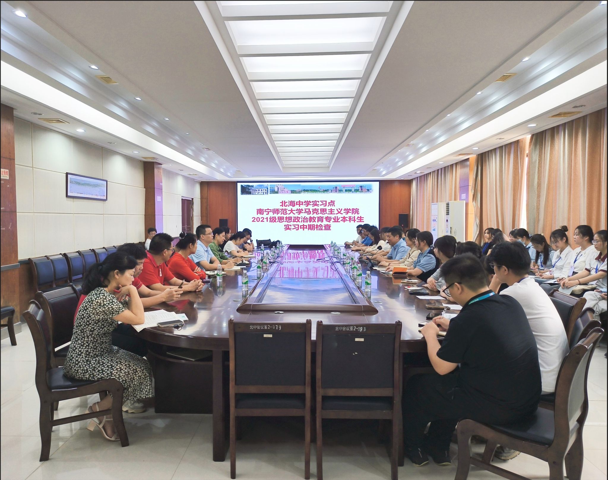 院长曾令辉、副院长王卫国及带队指导教师冯舒讌一行,于2024年5月10日赴北海中学开展2021级思想政治教育专业本科生教育实习中期质量检查及人才需求调研工作。
