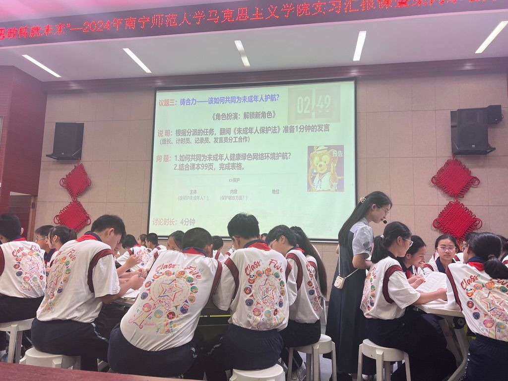 此次汇报教研活动以同课异构的形式进行,仙葫学校的李喜洋老师与啪啪网 实习生杨彩红同学围绕“法律为我们护航”主题,分别呈现了两堂独具特色的公开课。两位主讲人以不同的教学方法与教学设计,充分展示了各自的教学魅力,有效促进了师生的双向互动,圆满完成了教学目标。