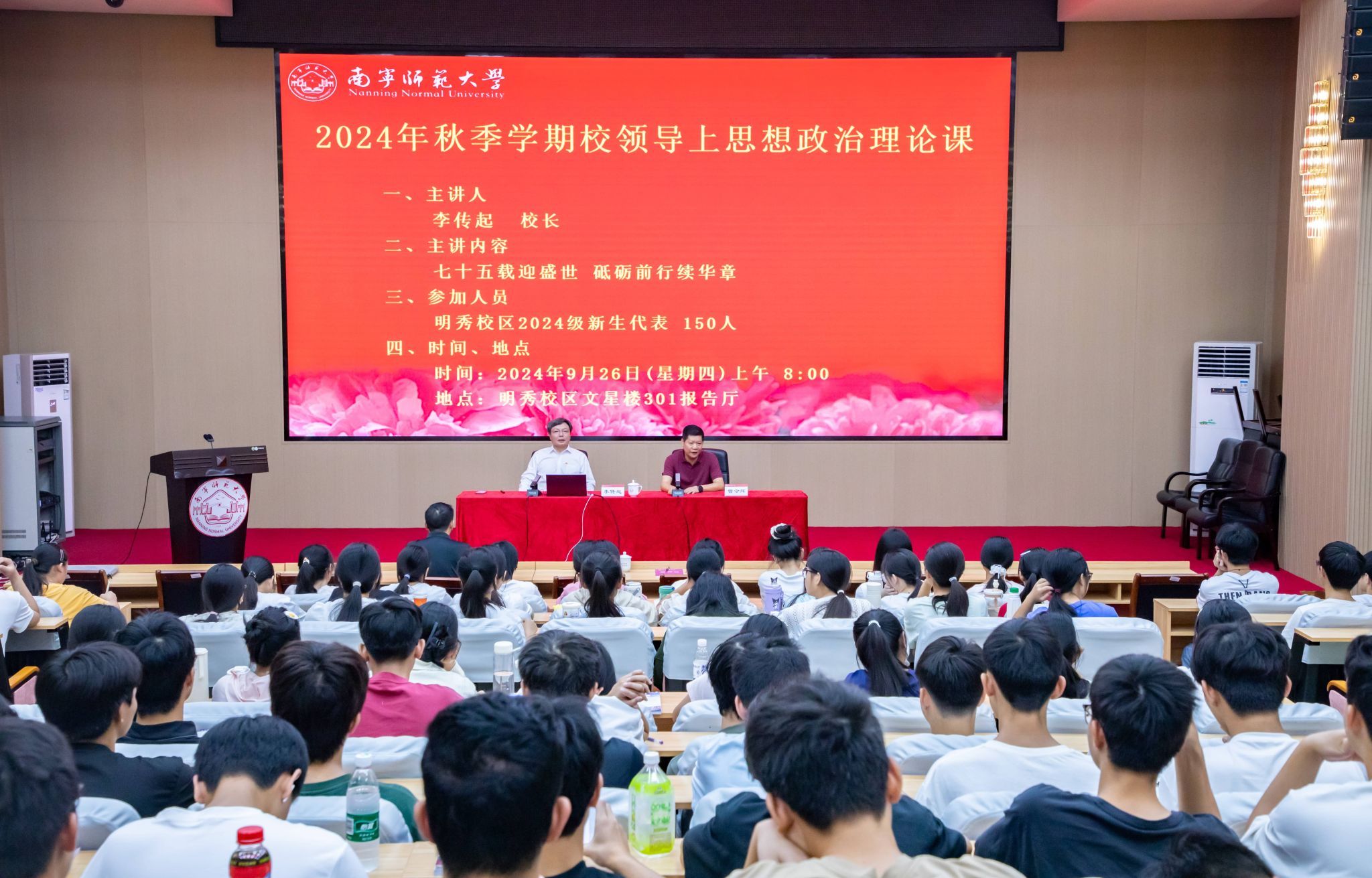 为深入推进“大思政课”建设,落实立德树人根本任务,把思想政治教育贯穿人才培养全过程。9月26日上午,李传起校长以“七十五载迎盛世砥砺前行续华章”为题,讲授2024年秋季学期“大思政课”。明秀校区各学院新生代表在文星楼301报告厅听课。本次“大思政课”由啪啪网