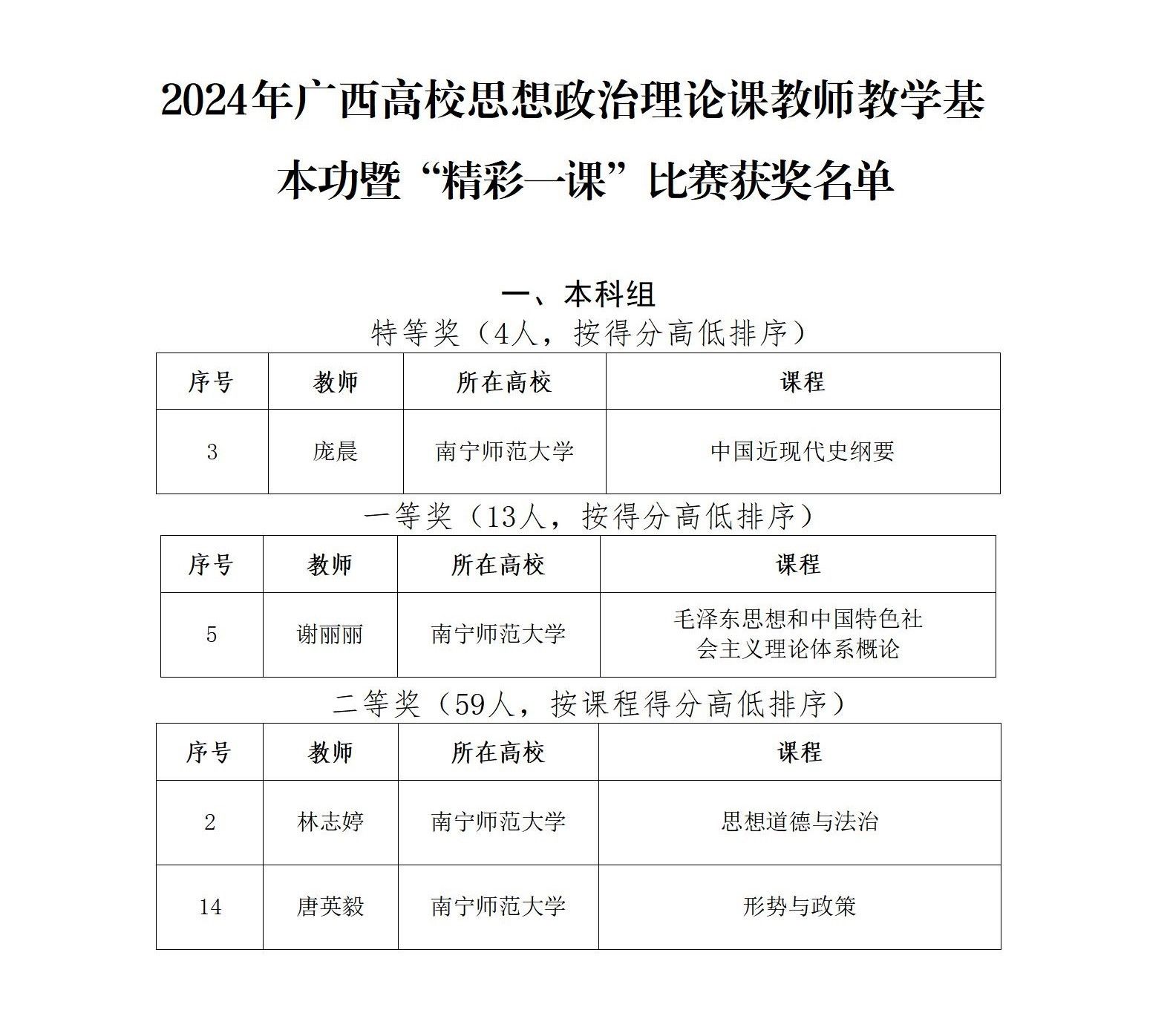 近日,自治区教育厅公布了2024年广西高校思想政治理论课教师教学基本功比赛暨“精彩一课”评选活动获奖名单,啪啪网
