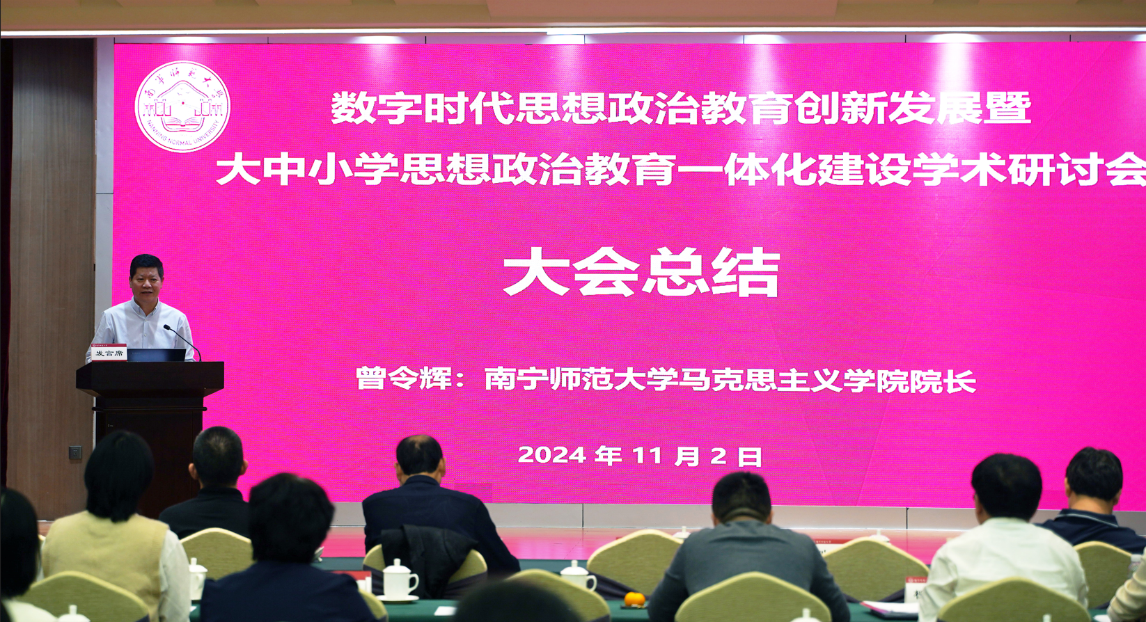曾令辉教授、韦吉锋教授、广西民族大学陈媛教授、桂林理工大学邱杰教授、广州理工学院柳恩铭教授、玉林师范学院教授杨耕等26位专家学者聚焦数字时代思想政治教育创新发展和大中小学思政课一体化建设作主旨报告。会议期间,还特别设立了“青年学者论坛”,先后有9名青年教师和研究生围绕思想政治教育数字化转型的理论与实践等问题作了发言。