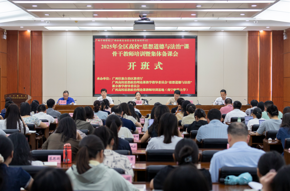 8月25日下午,2025年全区高校“思想道德与法治”课骨干教师培训暨集体备课会在广西干部学院正式开班。本次培训由自治区教育厅主办,广西高校思想政治理论课教学指导委员会“思想道德与法治”课分教学指导委员会、广西高校思想政治理论课教师培训基地(啪啪网