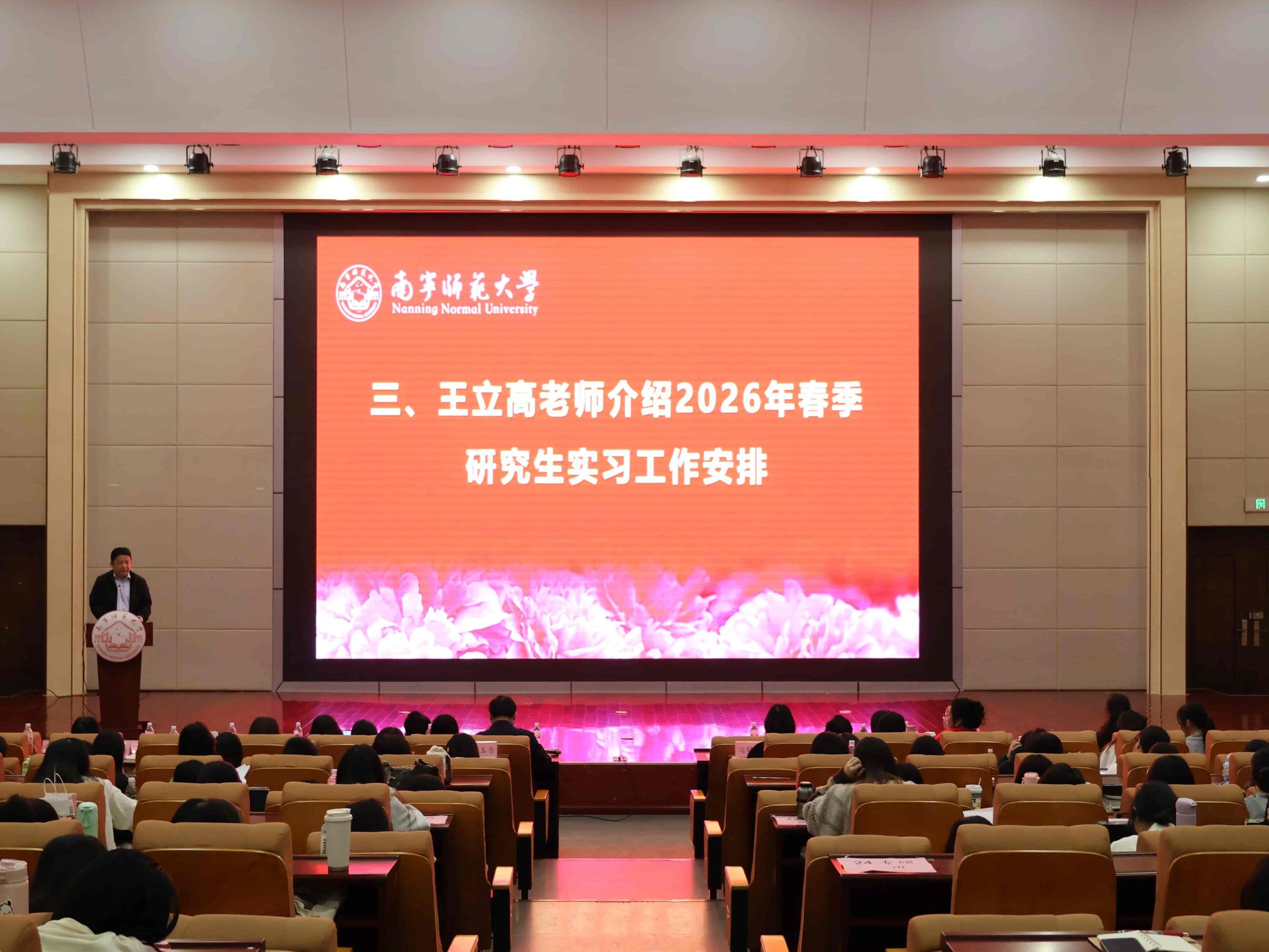 王立高老师介绍了2026年春季学期研究生实习工作安排。他结合研究生培养目标,鼓励同学们发挥专业优势,在实习中深化理论认识、提升实践创新能力,以扎实的学识和严谨的态度展现啪啪网
