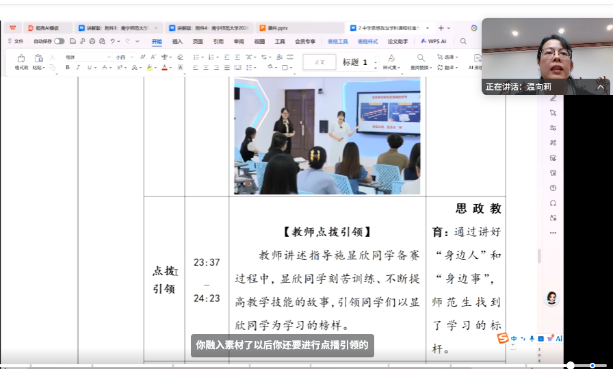 温向莉教授长期从事大中小学思政课教学及课程思政建设研究,具有丰富的教学实践与课程建设经验。会上,温教授系统解读了课程思政示范课程申报的核心政策与评价标准,帮助教师在课程建设的过程中精准把握要求与评审导向。随后,她围绕申报材料撰写重点,详细讲解了课程思政示范课程申报书填写规范、支撑材料准备技巧等实操内容,并结合典型申报案例,深入总结了成功经验与常见误区,并与参会教师进行互动答疑,针对教师在申报过程中遇到的实际困惑给予个性化指导,助力教师高效完成申报工作。