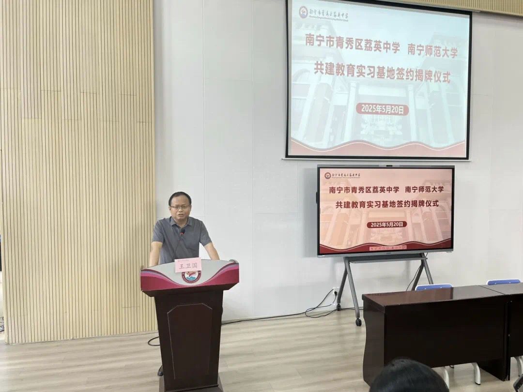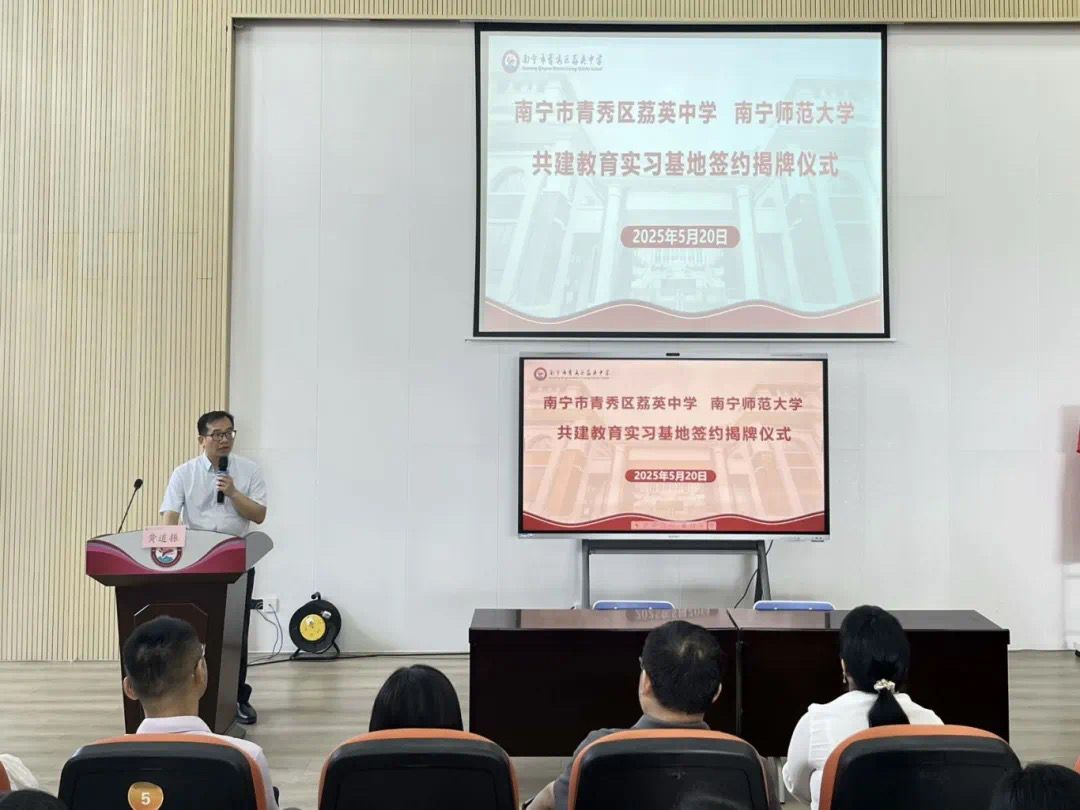 为进一步深化校际合作交流,拓宽学生就业渠道,提高人才培养质量,2025年5月20日上午,啪啪网 党委书记李玲、副院长王卫国以及学院教师代表赴南宁市青秀区荔英中学开展教育实习基地授牌暨访企拓岗促就业活动。