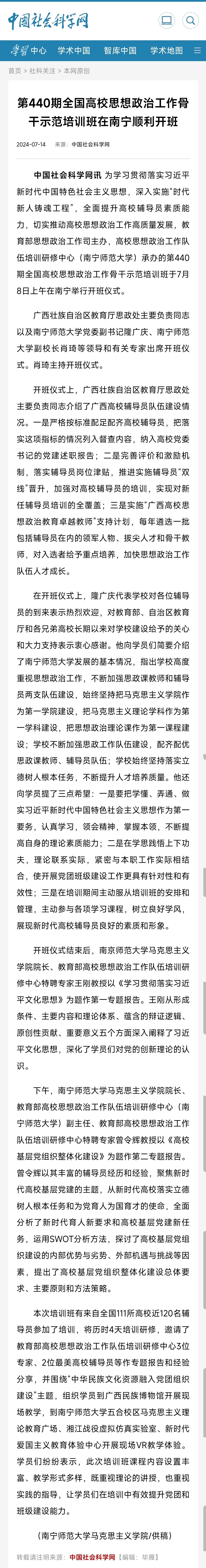 【转载】第440期全国高校思想政治工作骨干示范培训班在南宁顺利开班