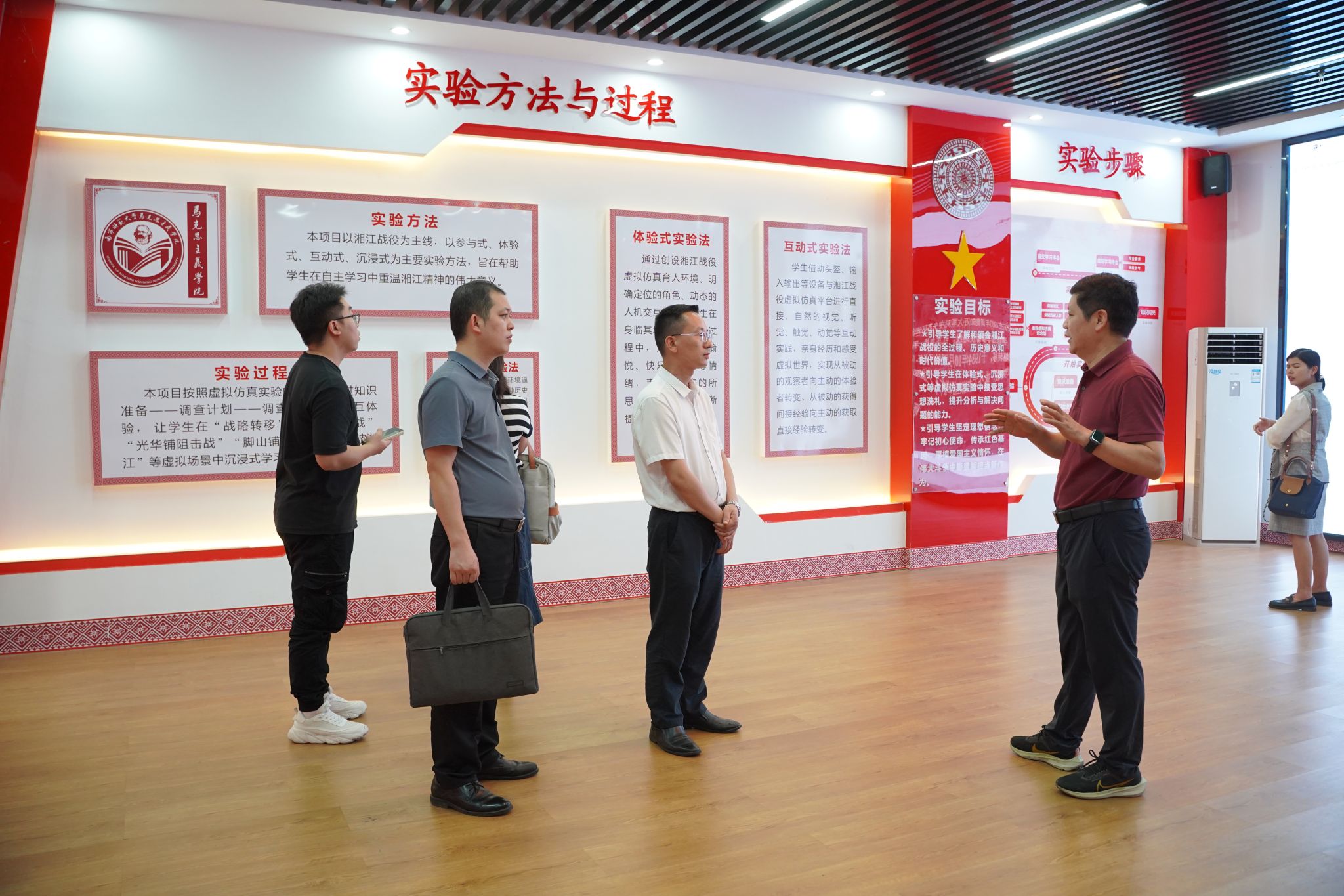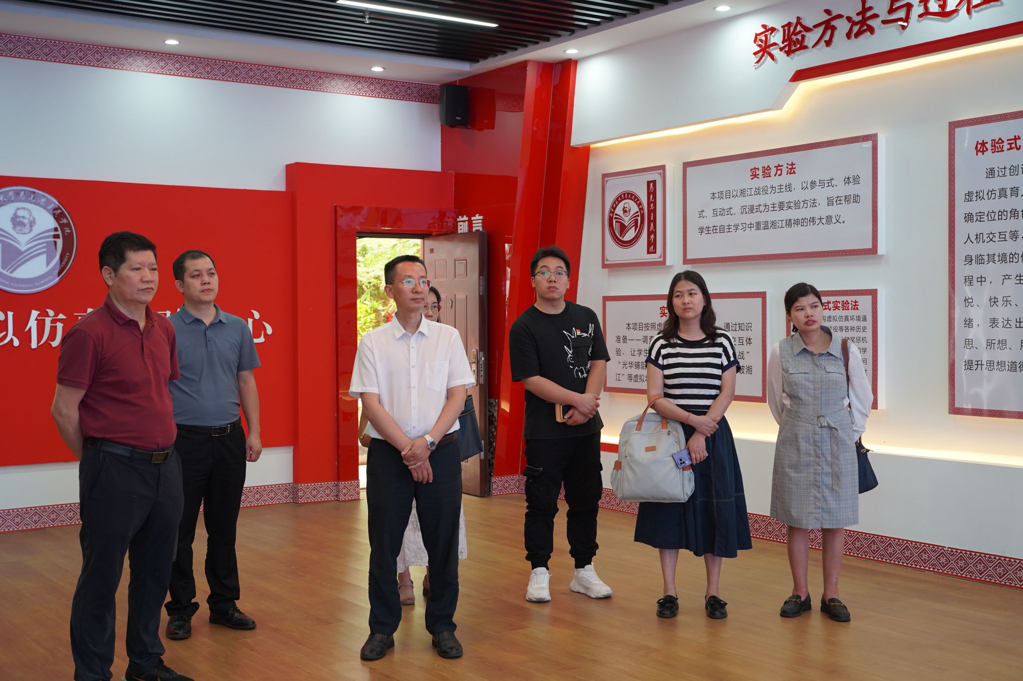 的教师们先后在3名讲解员带领下,参观了马克思主义理论教育广场、党史育人画廊、科学社会主义发展史教育馆、广西新时代爱国主义教育虚拟体验中心、湘江战役虚拟仿真实验中心等特色文化育人教学场所。随后,在啪啪网