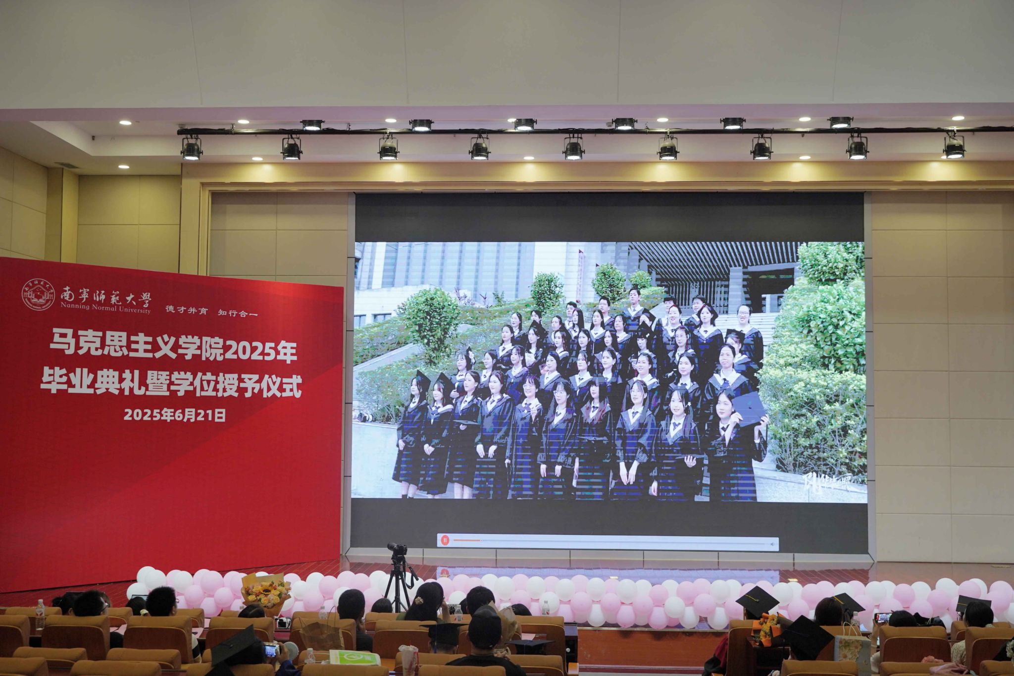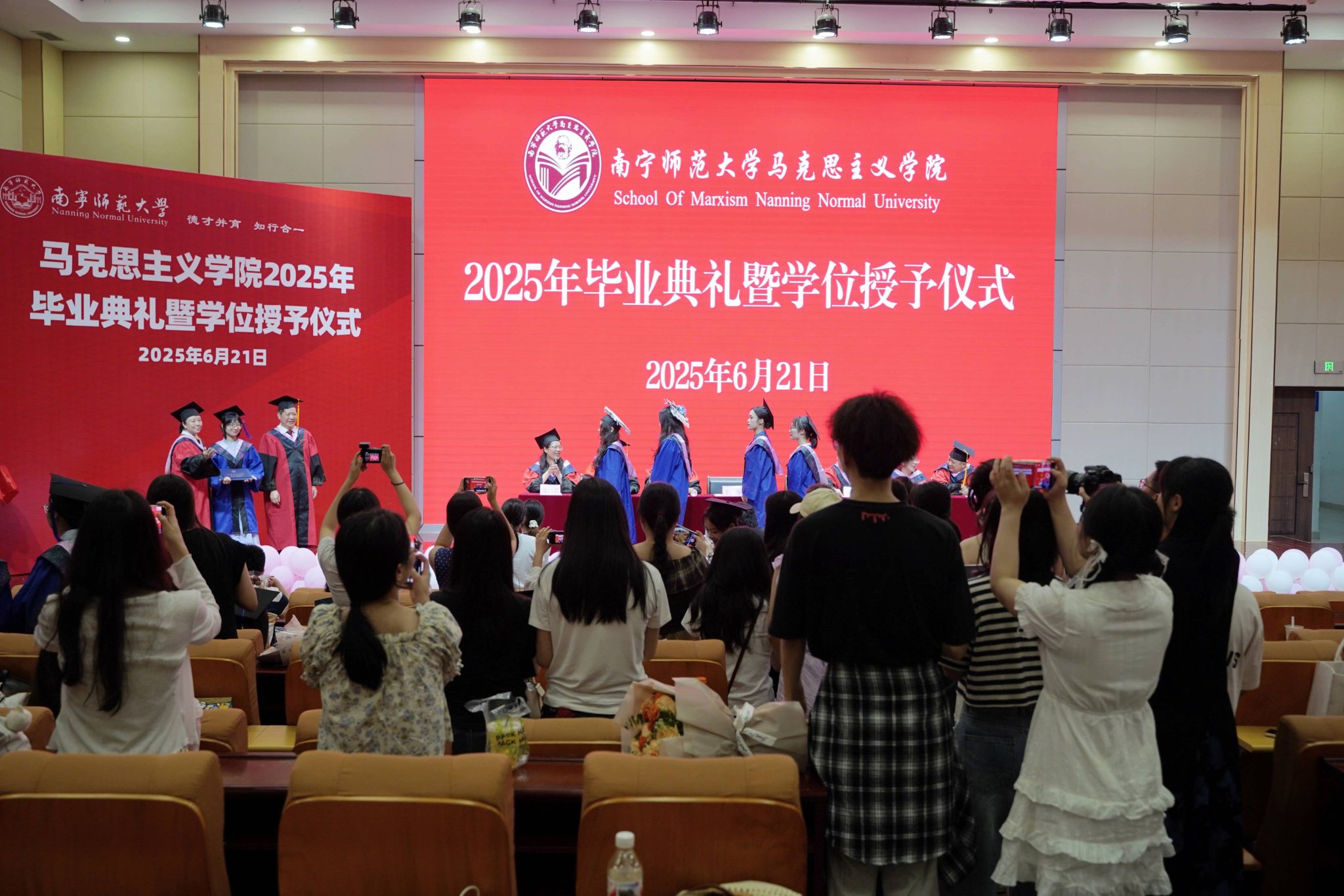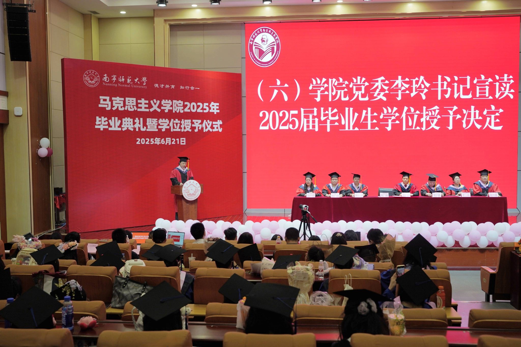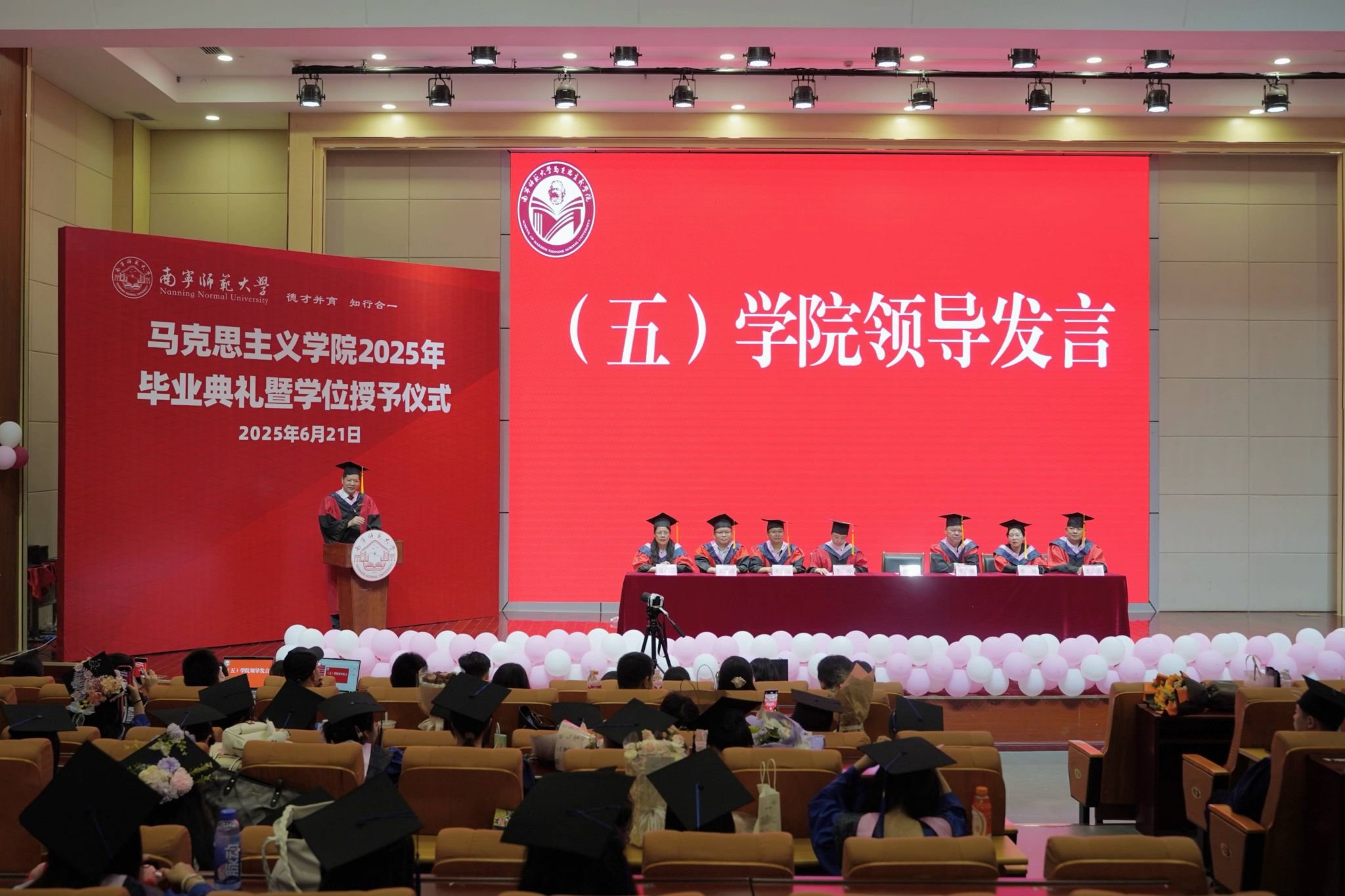在五合校区文综114报告厅举行2025年毕业典礼暨学位授予仪式。学院领导班子成员、学位评定委员会委员、教师代表、2025届全体硕士毕业研究生、本科毕业生和部分家长参加学位授予仪式