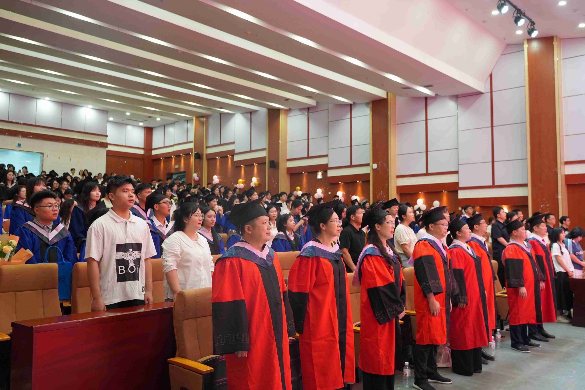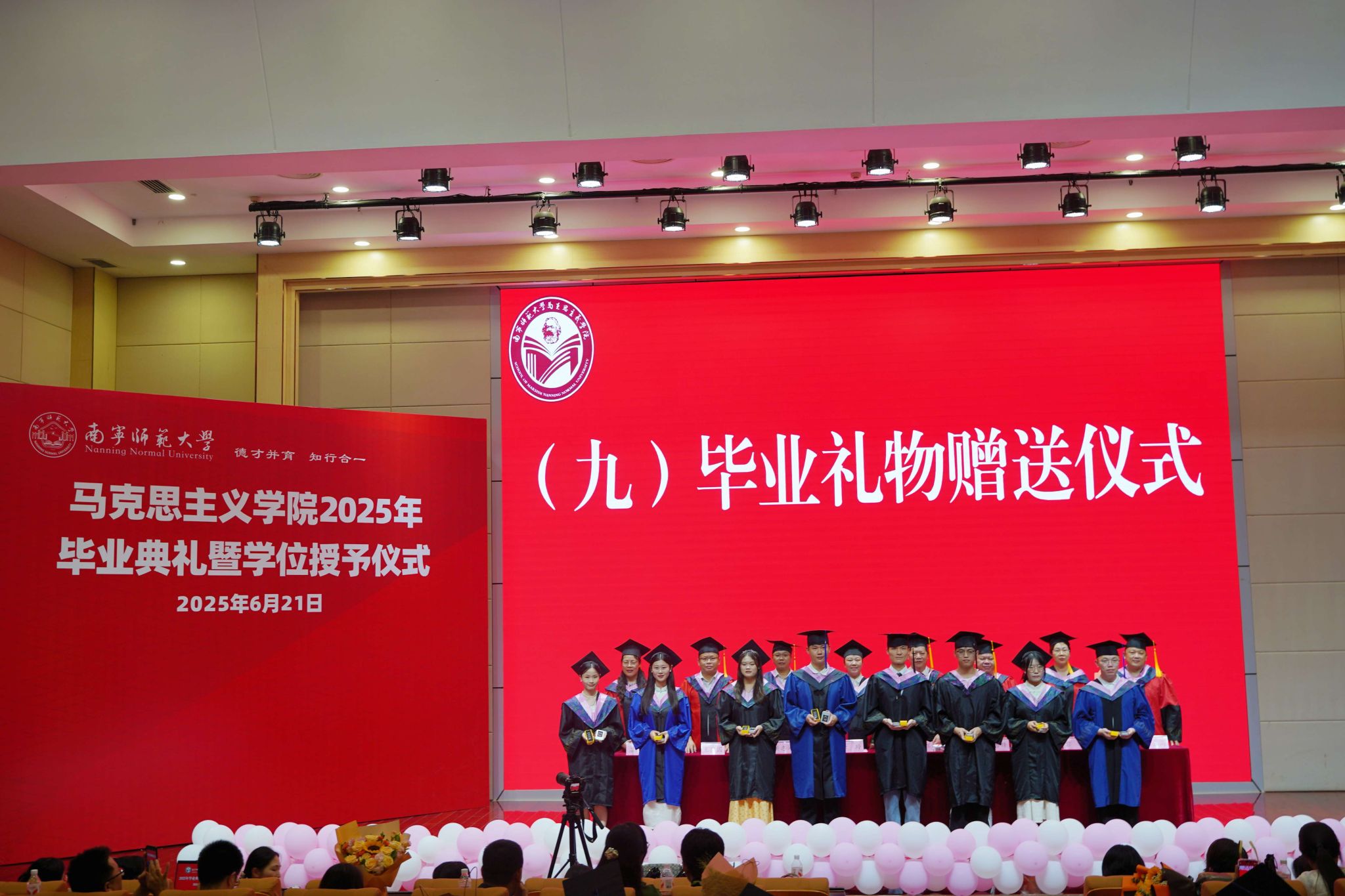 学院还精心为每一位毕业生送上了承载着学院美好期许和祝福的毕业纪念礼物。在温馨的氛围里,毕业视频缓缓播放,过往校园生活的画面一一呈现,唤起了毕业生们的美好回忆。最后,毕业典礼随着悠扬的校歌落下帷幕。