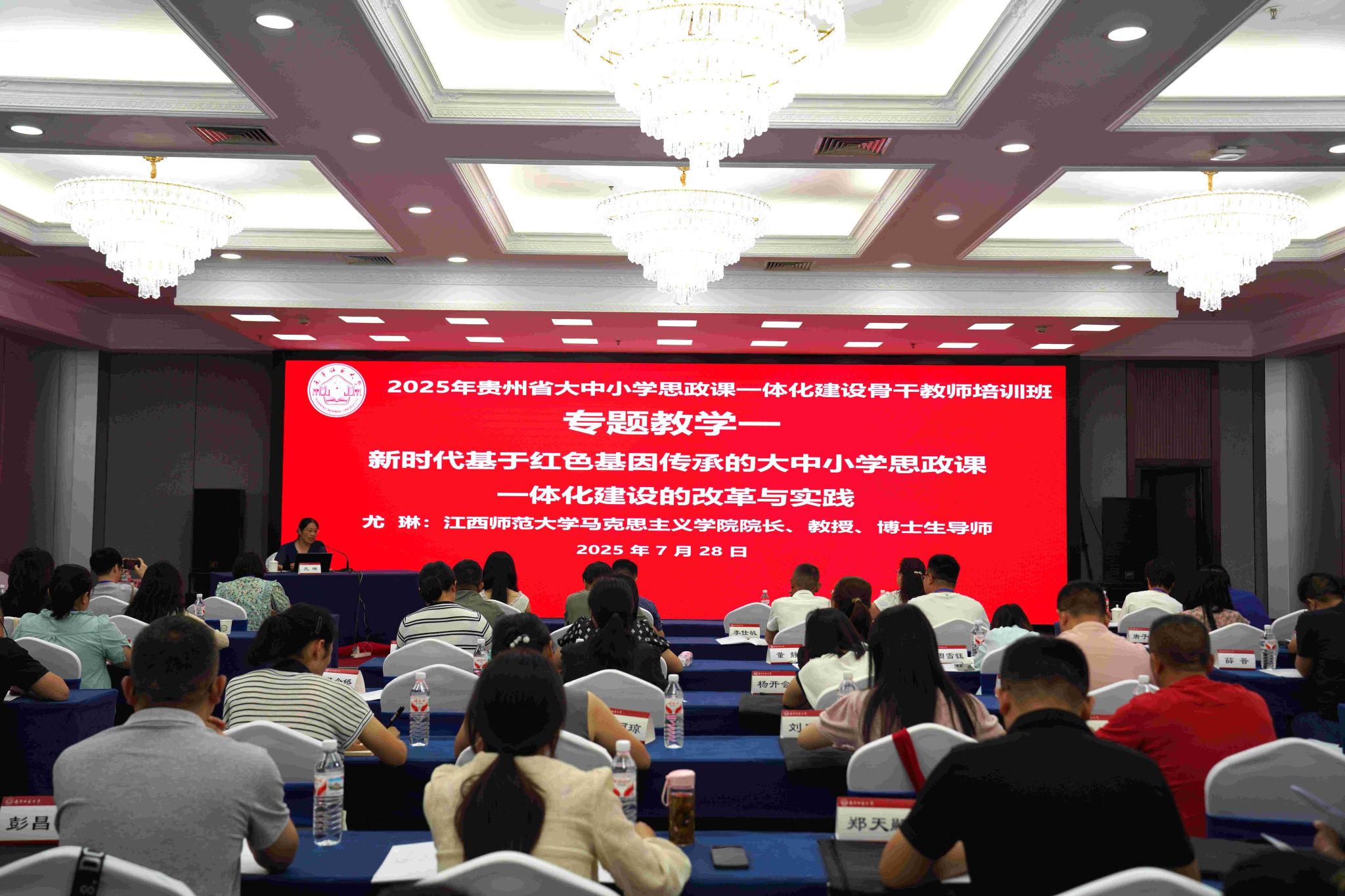 本次培训班有来自贵州省大中小学思政课教师骨干和研究生代表100人参加,旨在通过为期6天的系统培训,聚焦当前大中小学思政课一体化建设的热点与难点问题,着力提升贵州省大中小学思政课教师教育教学能力,推进新时代大中小学思政课一体化建设内涵式发展。为承办好本次培训班,我校承办方与主办方密切沟通,精心设置培训课程,内容涵盖学习贯彻习近平总书记关于思政课建设的重要论述、大中小学思政课一体化建设的热点与难点分析、铸牢中华民族共同体意识融入大中小学思政课教学的方法路径、大中小学一体化思政课教学设计和实践创新等,采用专题讲座、经验分享、交流研讨、现场教学等多种形式,确保培训取得预期成效。