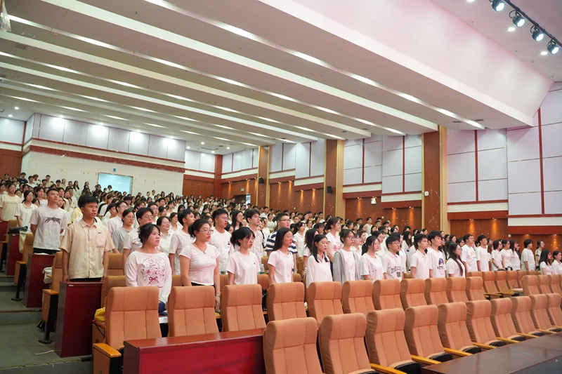 教师代表温向莉教授从“我是谁、从哪里来、到哪里去”三个哲学命题出发,引导学生深入思考人生定位和发展方向。她呼吁全体新生不负时代、珍惜光阴,在服务国家和人民的实践中实现人生价值。新生代表邓腾辉、赵诗画在发言中表示,将坚定理想信念,夯实专业基础,努力成为让党放心、爱国奉献、担当民族复兴大任的时代新人。随后,全体新生庄严宣誓,承诺为中华民族伟大复兴贡献青春力量。最后,学院领导和老师为新生发放梦想卡,引导新生对自己的职业发展进行科学的规划。