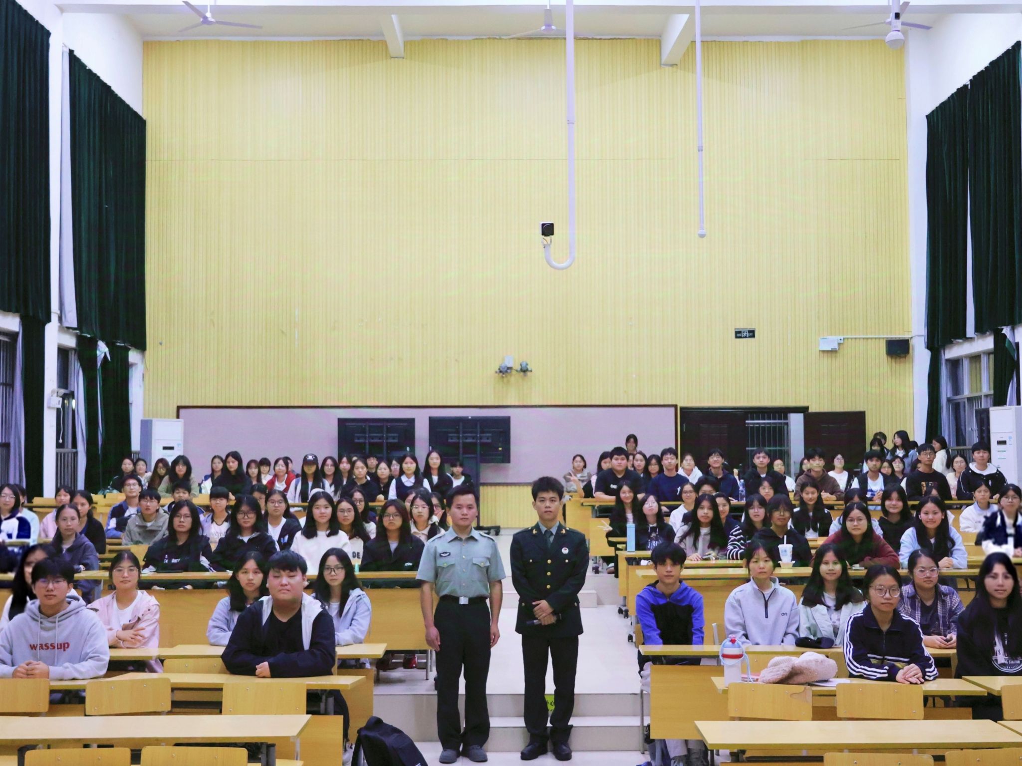 于11月5日晚在五合校区五综107教室举办2026年征兵宣传讲座。讲座特邀2024级学硕班覃家俊、2025级思政一班钟宗川两位退伍复学的同学担任主讲嘉宾,啪啪网