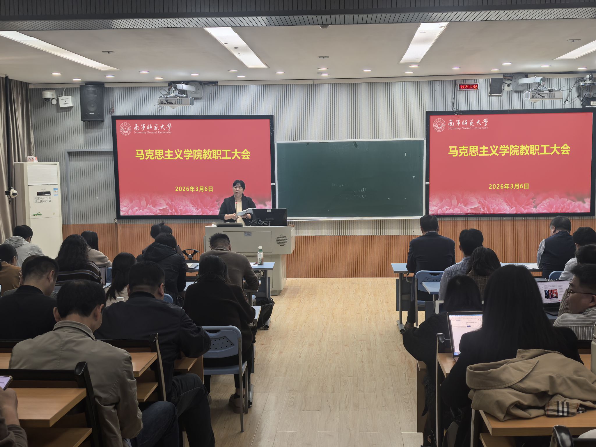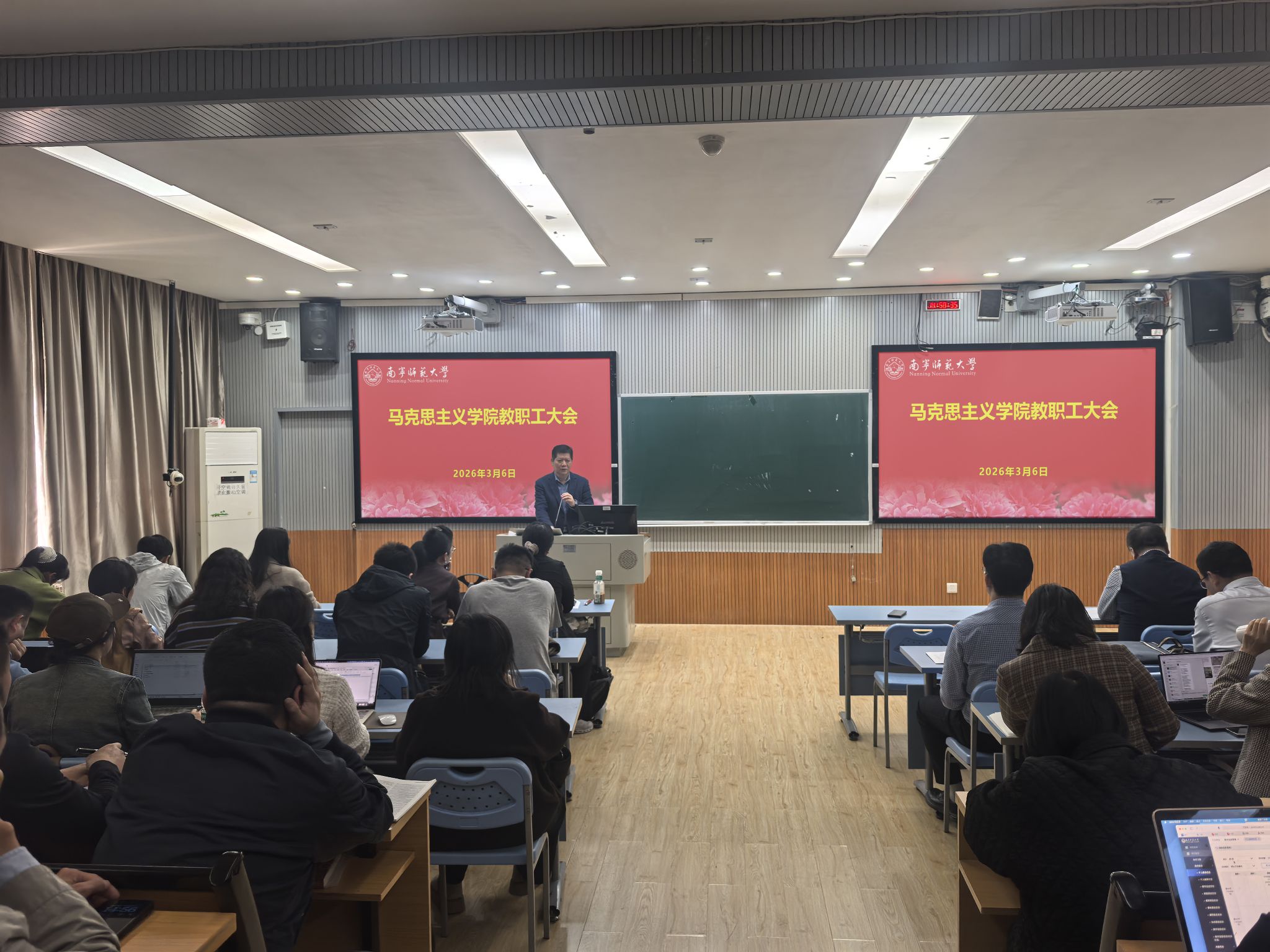在文星楼414教室召开2026年春季学期工作会,传达上级会议精神、总结过去一年工作、部署新学期相关工作。啪啪网